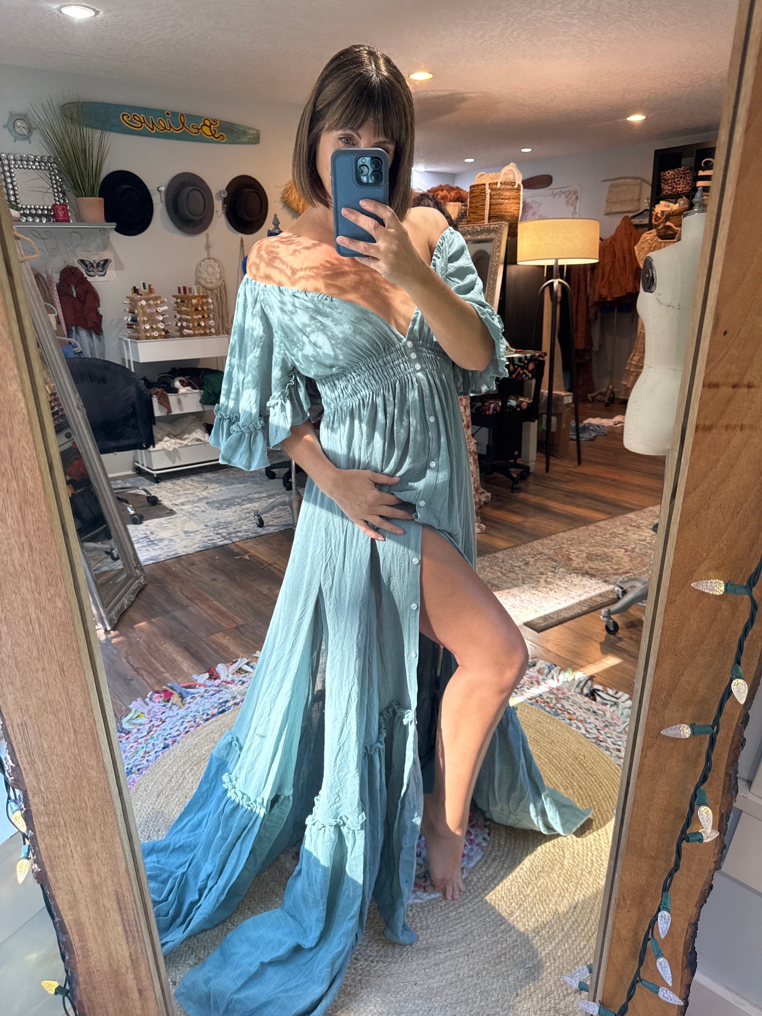 Ready to ship sale Awaken dress coastal blue linen cotton